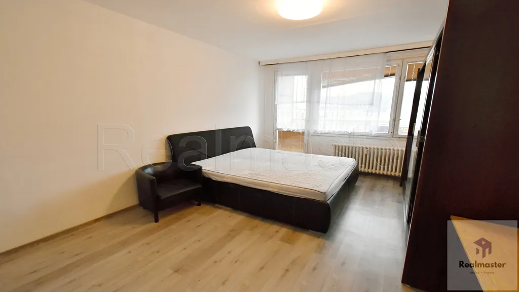 V bytě ponechán nábytek, kožená sedačka, šatní skříň, jídelní stůl, židle, lednice, dvoulůžko, komoda.
