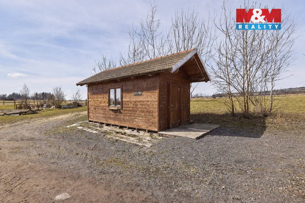 Areál zahrnuje halu cca 1000 m² (42 × 25 m) s výškou 7–9 m, vjezdem pro kamion, 380 V a dvě bytové jednotky (90 m² a 60 m²). Zastavěná plocha cca 1 922 m². Možnost dokoupení navazujících pozemků cca 3,5 ha.