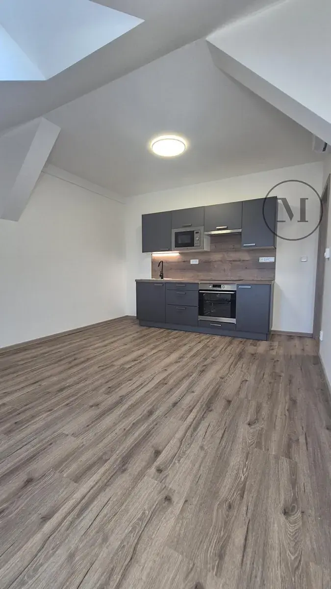 Nabízíme k pronájmu krásný, moderně zrekonstruovaný byt 2+kk o velikosti 41,9 m², který se nachází v podkroví menšího, klidného domu s pouhými 6 jednotkami na adrese Novohradská 74.