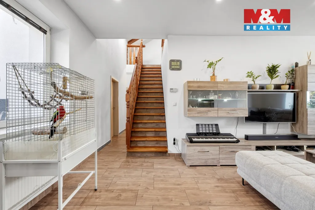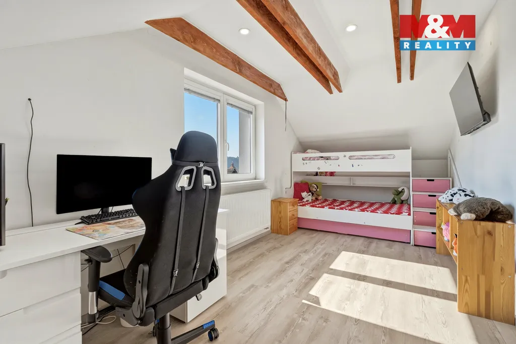 V přízemí se nachází prostorná kuchyň s jídelní částí, světlý obývací pokoj, dvě ložnice, koupelna a přímý vstup do garáže. V patře naleznete další čtyři samostatné ložnice, které poskytují dostatek soukromí pro všechny členy domácnosti.