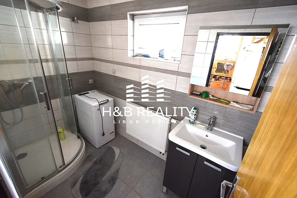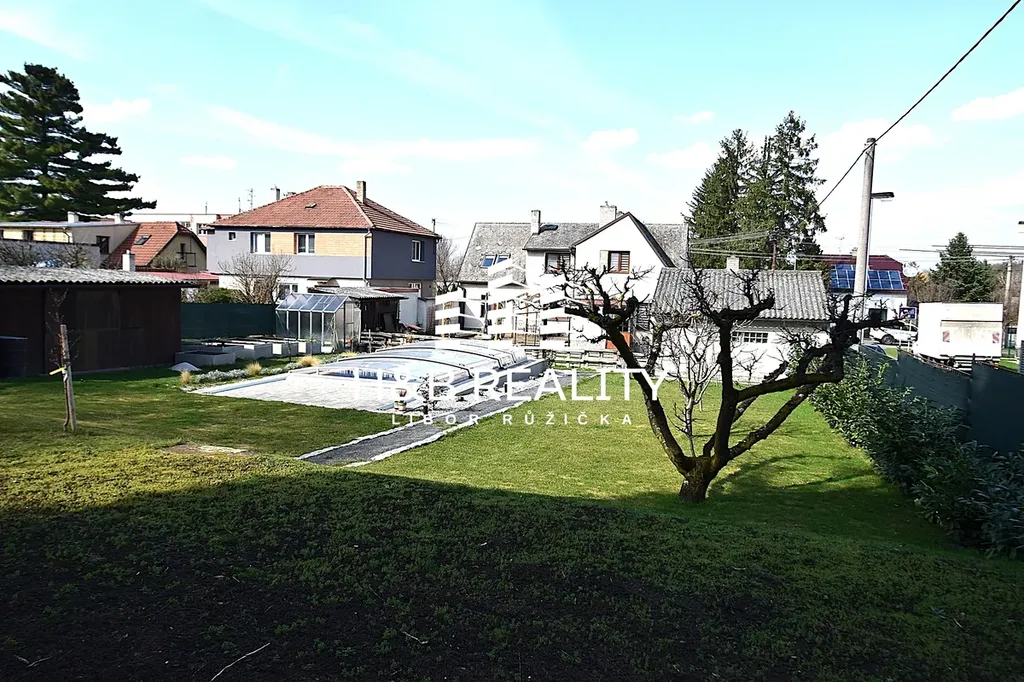 Částečně rekonstruovaný dvougenerační rodinný dům se nachází na krásném a pečlivě udržovaném pozemku se vzrostlou zelení a stromy, bazénem ( 18 m2 ), terasou, garáží ( 35 m2 ) a zahradním domkem, v klidné části obce Měšice, v blízkosti Prahy. Dispozice domu sestává v přízemí ze vstupní haly, obývacího pokoje, ložnice, kuchyně se spíží, koupelny se sprchovým koutem, samostatné toalety a komory, kterou lze využít i jako šatnu. V patře sestává z chodby s praktickou komorou, obývacího pokoje, ložnice, dětského pokoje, kompletně vybavené moderní kuchyně se spíží, koupelny se sprchovým koutem, toaletou a místem pro pračku i sušičku. V domě je také samozřejmě sklep jehož součástí je i technická místnost s plynovým kotlem, bojlery a technikou, která umožňuje využívat obecní vodovod nebo vodu z vlastní studny.