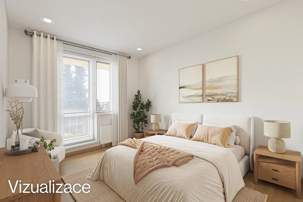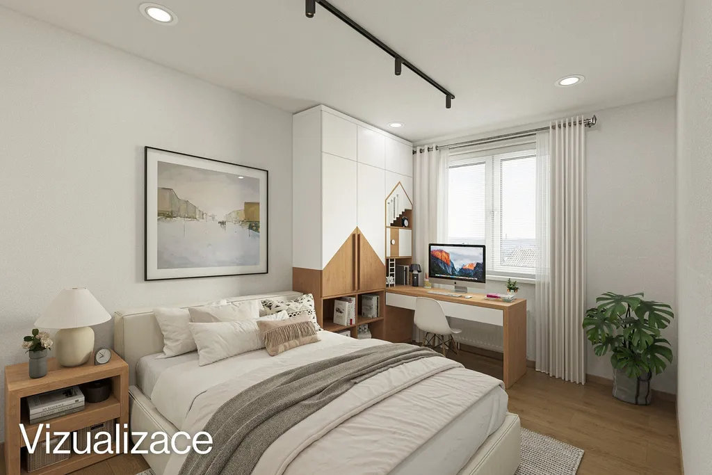 Součástí prezentace jsou také vizualizace, které ukazují možný budoucí stav po rekonstrukci a slouží jako inspirace pro budoucí využití a uspořádání interiéru.