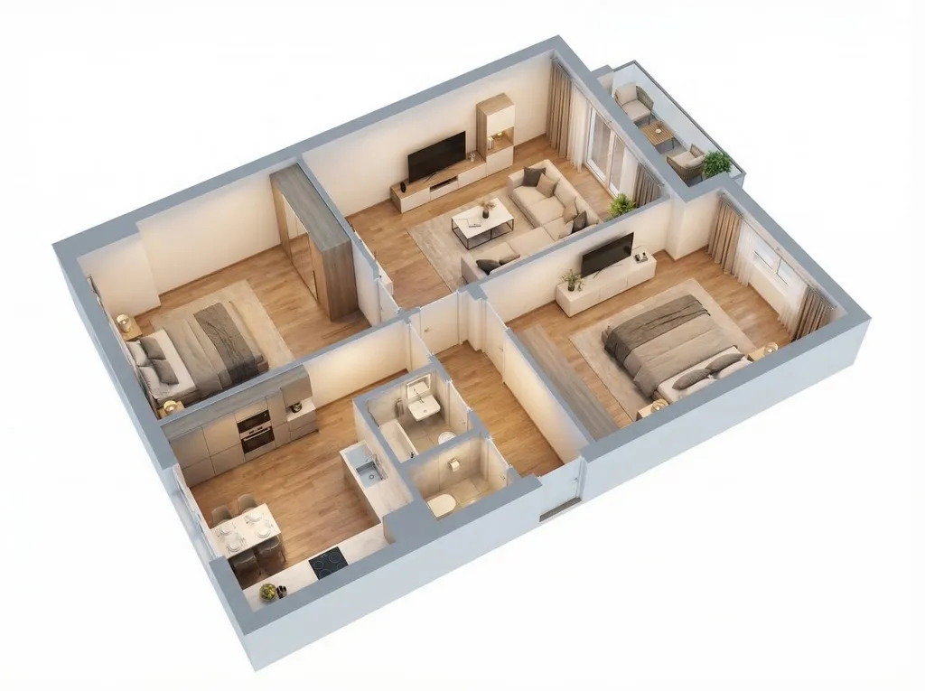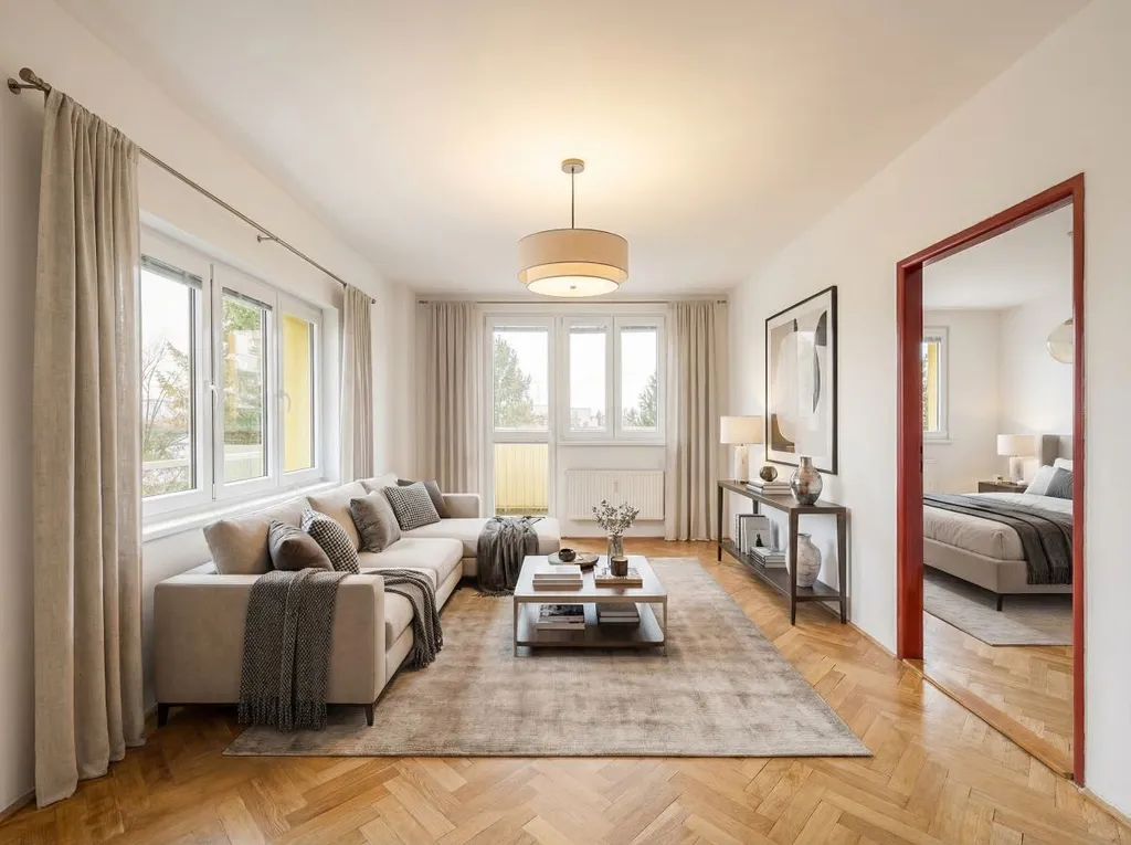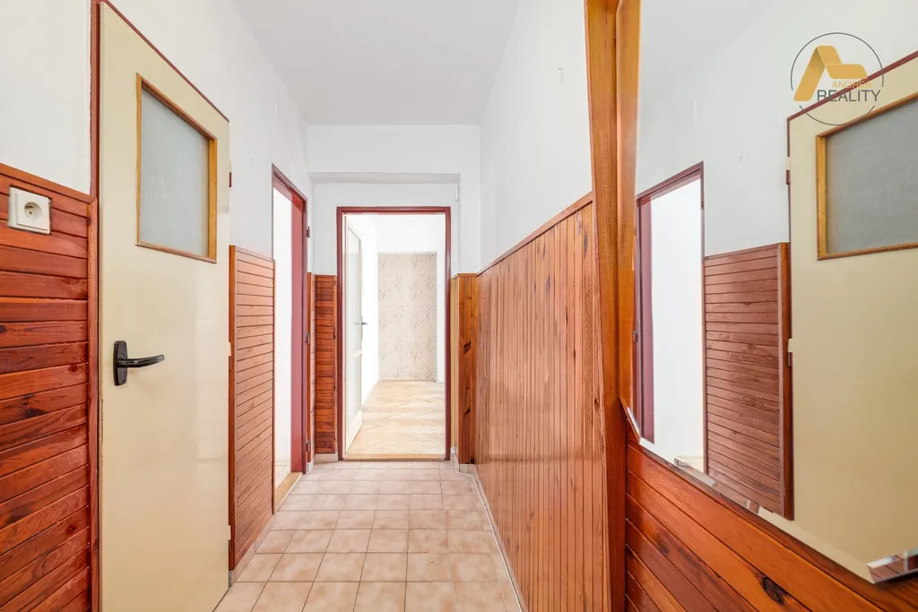 Byt disponuje třemi samostatnými, světlými a vzdušnými místnostmi, které nabízejí ideální rovnováhu mezi soukromím a otevřeným prostorem. Interiér vás hned při vstupu prostornou předsíní okouzlí vůní zachovalých broušených parket, které dodávají prostoru teplo, přirozenou eleganci a příjemnou atmosféru domova.