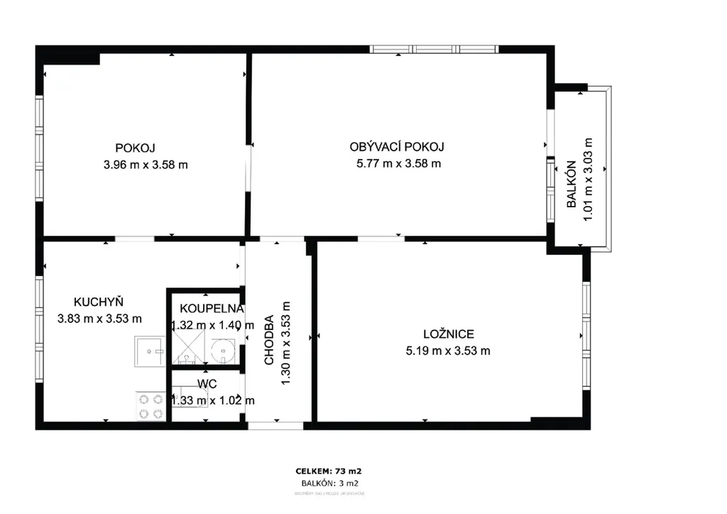Velkou předností je balkon (3m2) a také výjimečná poloha – jen pár kroků od centra města,