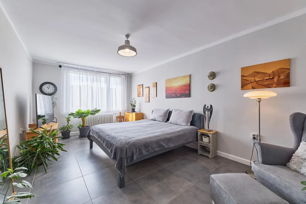 Byt je po kompletní rekonstrukci, provedené s citem a důrazem na detail a uživatelskou přívětivost. Interiér tak působí velmi příjemně, harmonicky a nadčasově. Dominantou prostoru je promyšlené propojení moderních prvků s útulnou atmosférou domova, kde každý detail má své místo.