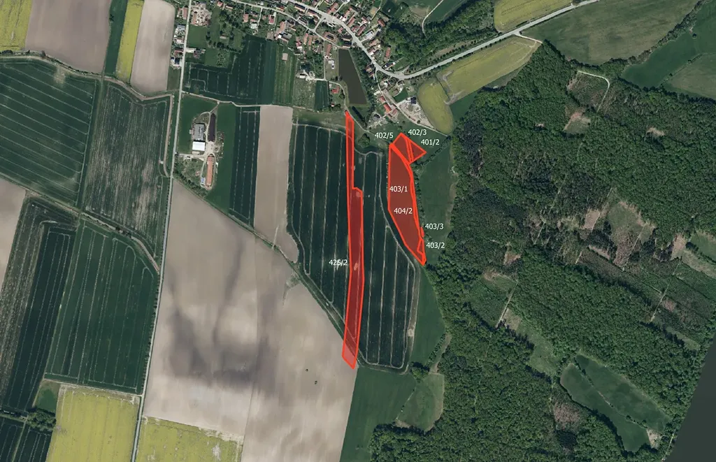 -> parc. č. 401/2, 402/3, 402/5, 403/1, 403/2, 403/3, 404/2, 425/2 (LV 422)