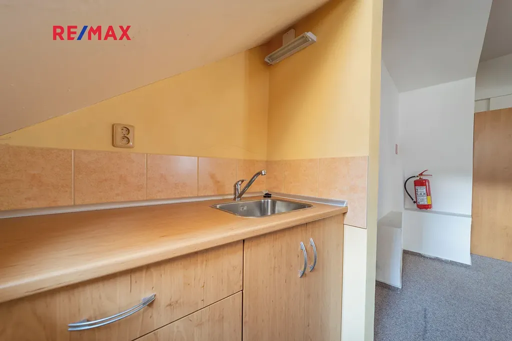 3. NP: Stylový otevřený podkrovní prostor s kuchyňským koutem a samostatným WC.