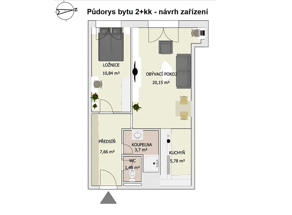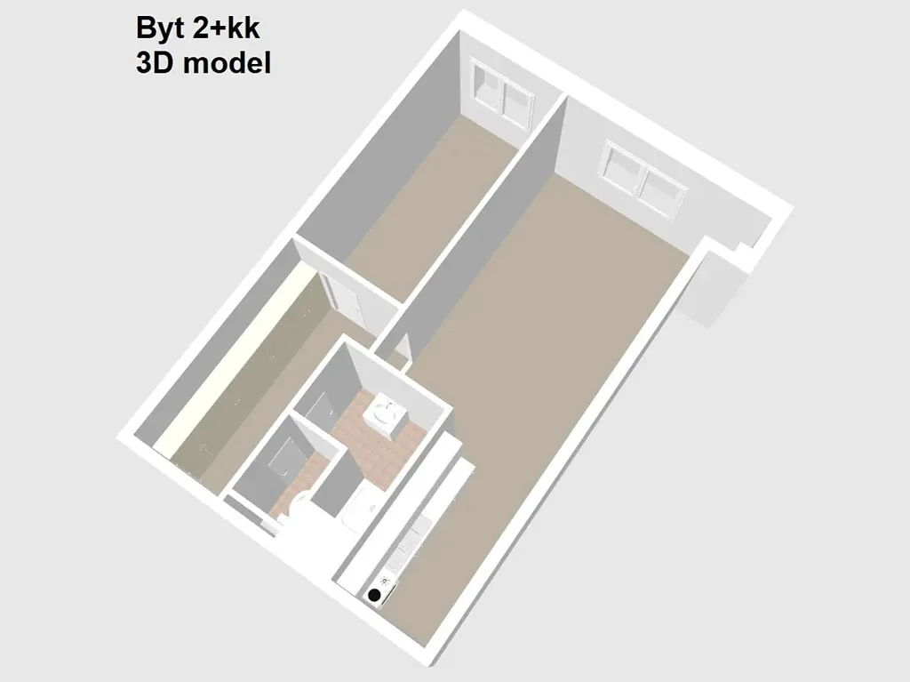 BYT 2+kk má plochu 50 m2 a nachází se v 1. NP. (přízemí) bytového domu. Orientace oken je na západ. Byt je v dobrém stavu s možností okamžitého bydlení či pronajmutí. V bytě může zůstat částečné vybavení.