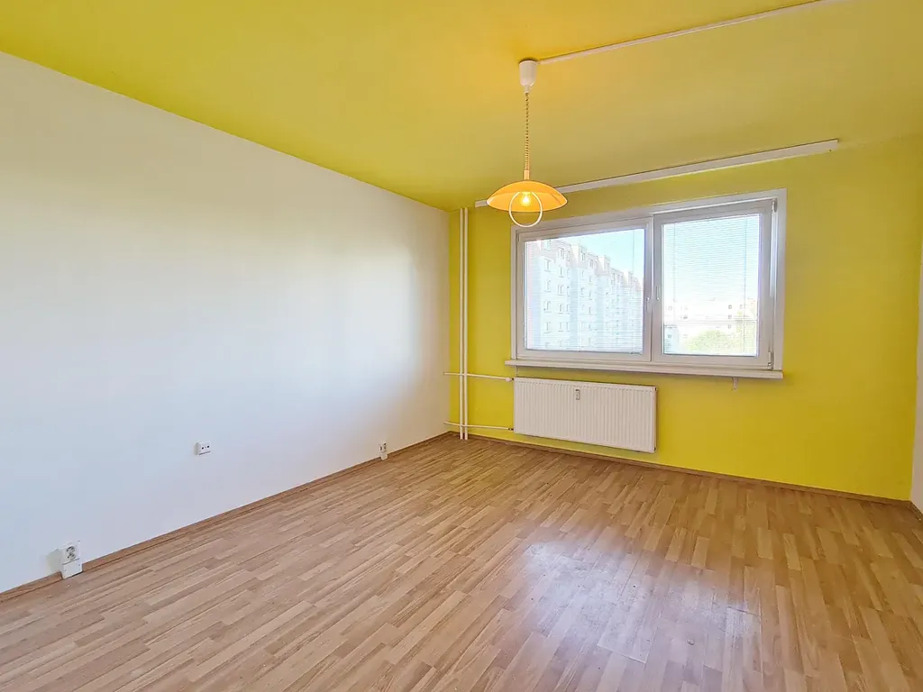 Byt se skládá z prostorné chodby, kuchyně, koupelny s vanou, samostatného WC, obývacího pokoje, průchozí šatny a ložnice. Mimo šatnu jsou všechny místnosti neprůchozí. Orientace je na západ a východ. Na podlahách je laminát, PVC a ker. dlažba v koupelně a WC. V kuchyni je k dispozici kombinovaný sporák. Vytápění a ohřev vody jsou ústřední dálkové. Součástí pronájmu je také sklepní kóje. Parkovat lze na veřejné ulici před domem.