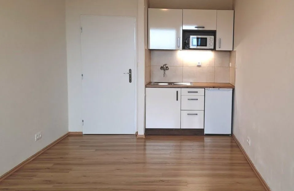Pronájem malé garsoniéry 21 m2 v 9. patře cihlového domu v Michli. K bytu patří zasklená lodžie cca 2,5 m2 a malá sklepní kóje.