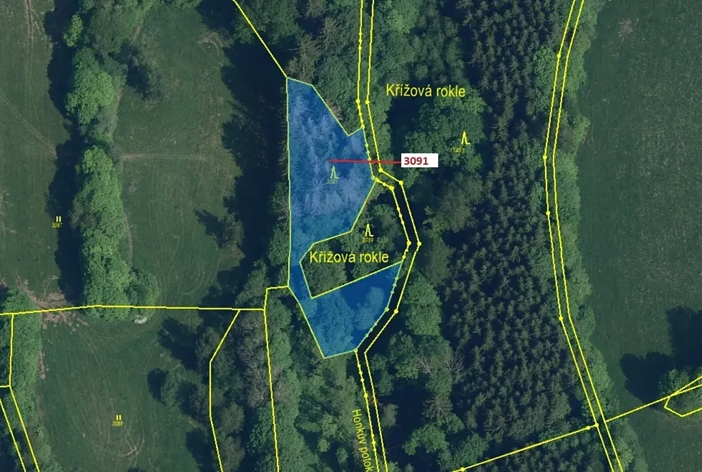 Lesní pozemek o výměře 1964 m2, parcelní číslo 3091, podíl 1/1, katastrální území Benešov u Semil, obec Benešov u Semil, obec s rozšířenou působností Semily, okres Semily, Liberecký kraj.