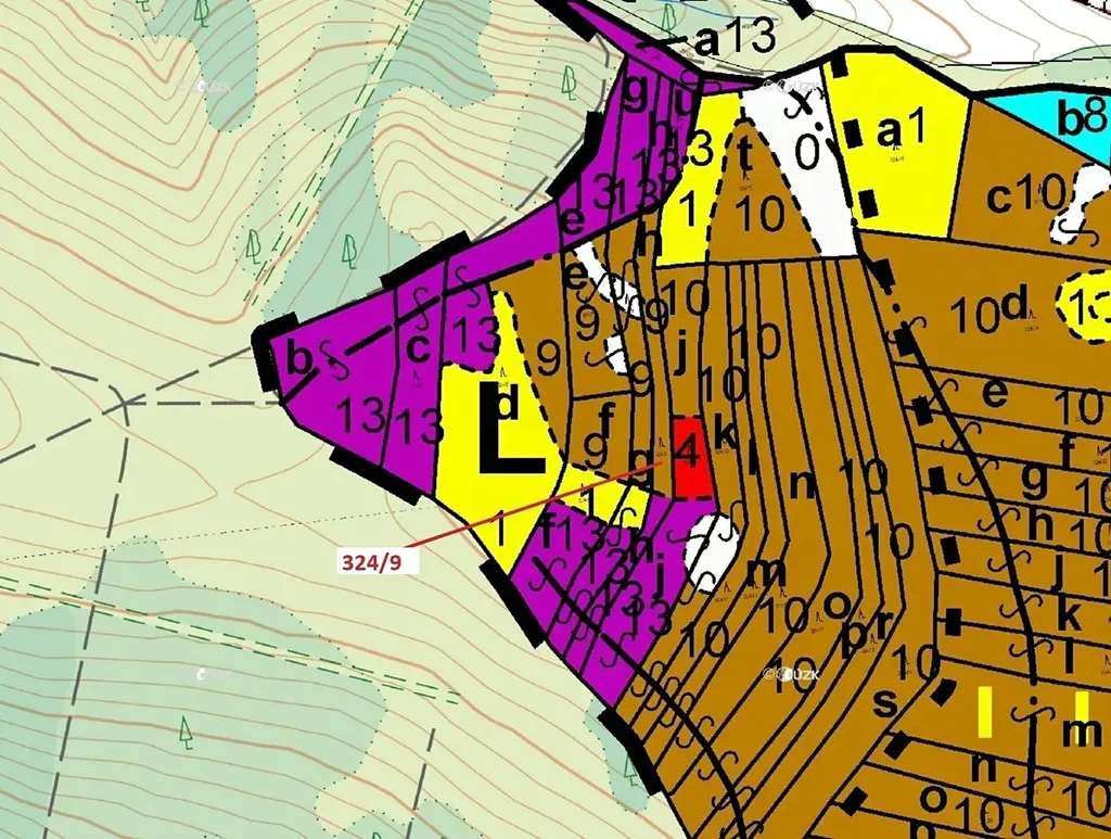 Lesní pozemek o výměře 1978 m2, parcelní číslo 324/9, podíl 1/1, katastrální území Chotěbudice, obec Chotěbudice, obec s rozšířenou působností Moravské Budějovice, okres Třebíč, Kraj Vysočina. Po těžbě.