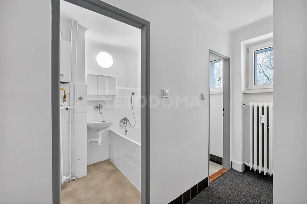 Součástí bytu je kuchyňská linka s plynovým sporákem. Koupelna disponuje vanou, WC je samostatné. Ohřev vody zajišťuje plynový ohřívač. Velmi praktickým prvkem je vlastní spíž přímo v bytě, která šetří místo v kuchyni.
