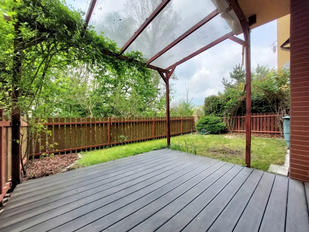 Byt se nabízí částečně vybavený. Kuchyně disponuje novou myčkou, elektrickou troubou, varnou deskou a digestoří. Obývací část je volná pro nábytek dle Vašich představ a je zde i klimatizace. Součástí ložnice je velká vestavěná skříň i s osvětlením. V koupelně je vana, umyvadlo a toaleta. V předsíni najdeme ještě jednu vestavěnou skříň. Z obývací části se jde na prostornou předzahrádku s krytou terasou, která díky stromům v okolí poskytuje příjemné soukromí.