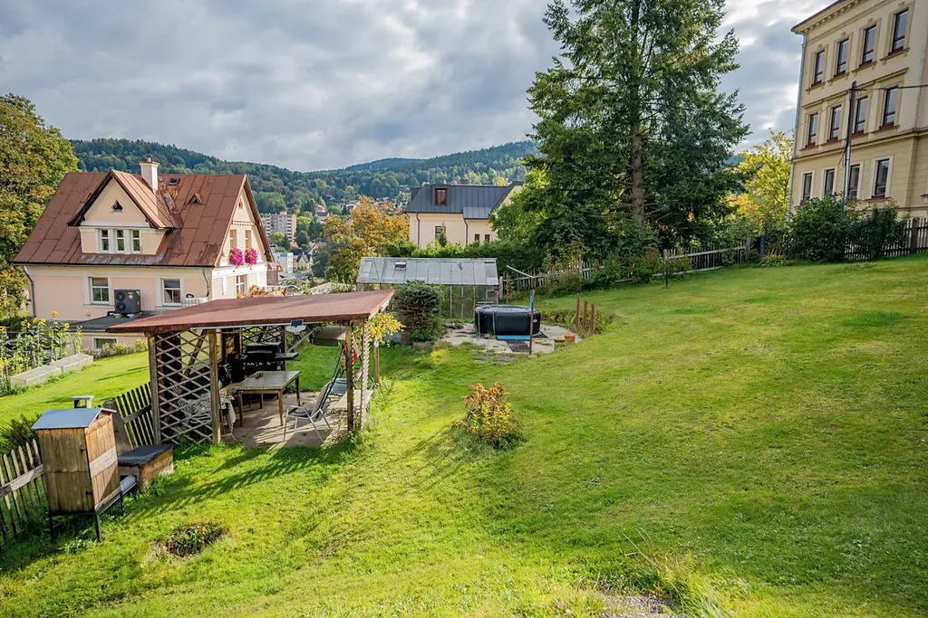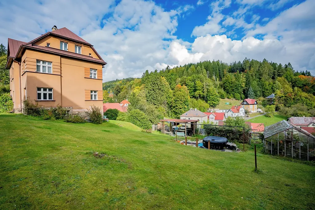 Nabízím udržovaný vícegenerační rodinný dům o třech bytových jednotkách s prostornou zahradou a garážemi v ulici Komenského v Tanvaldě. Dům se nachází na slunném klidném místě nedaleko centra s výhledem na Šumburk n.D. Jedná se o samostatně stojící rodinný dům o jednom podzemním podlaží, kde se nachází sklady, dílna, kotelna a sklepní kóje, a třech nadzemních podlažích, ve kterých je vždy umístěna bytová jednotka o velikosti 3+1. K dispozici je také společná půda. Každý byt má vlastní elektrickou přípojku, poměrové měření vody a samostatný ohřev teplé vody pomocí plynové karmy. Společné je však ústřední plynové vytápění. V případě potřeby je zde i záložní kotel na tuhá paliva. Objekt je napojený na obecní vodovod a kanalizace je svedena do septiku. K domu patří udržovaná zahrada o výměře 1.362 m2, na které se nachází ovocné stromy a keře, dále pak dřevěná pergola. K Dispozici je také velká dvojgaráž od zast. ploše 91 m2 a jedno zastřešené parkovací stání. Dům i garáže jsou celoročně přístupné po místní asfaltové komunikaci. Rodinný dům je vhodný pro početnou rodinu nebo jako investici na pronájem jednotlivých bytů. Volné dohodou.