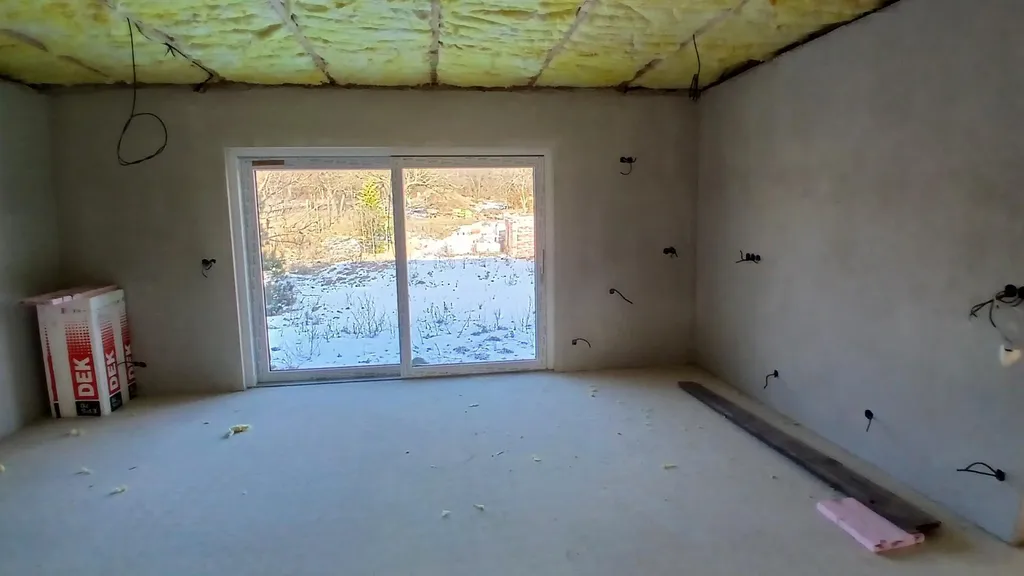 - vytápění - tepelné čerpadlo - podlahové vytápění do systémových desek vč. rozdělovače, v koupelně i topné těleso