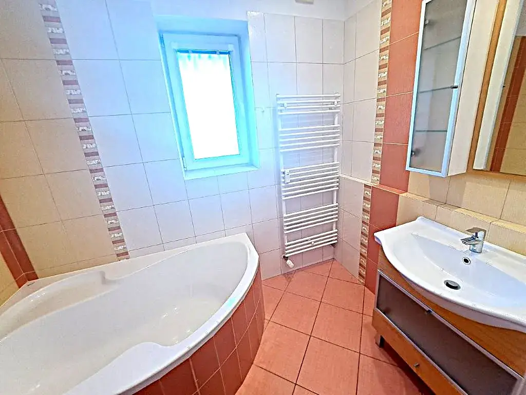 Celková užitná plocha bytu je 79,6 m2. Dispoziční řešení bytu: vstup-šatna, koupelna s oknem (vana, umyvadlo, el. žebřík), samostatné WC Geberit s umyvadlem a ruční sprchou, chodba, kuchyň - propojená s obývacím pokojem a východem na balkón, ložnice, pokoj. Byt je prostorný a světlý. V bytě jsou plastová okna, nové rozvody včetně elektřiny v mědi, nové obložkové dveře, nová světla, podhledy, koupelna, WC Geberit, kuchyň, podlahy pod kobercem-parkety.