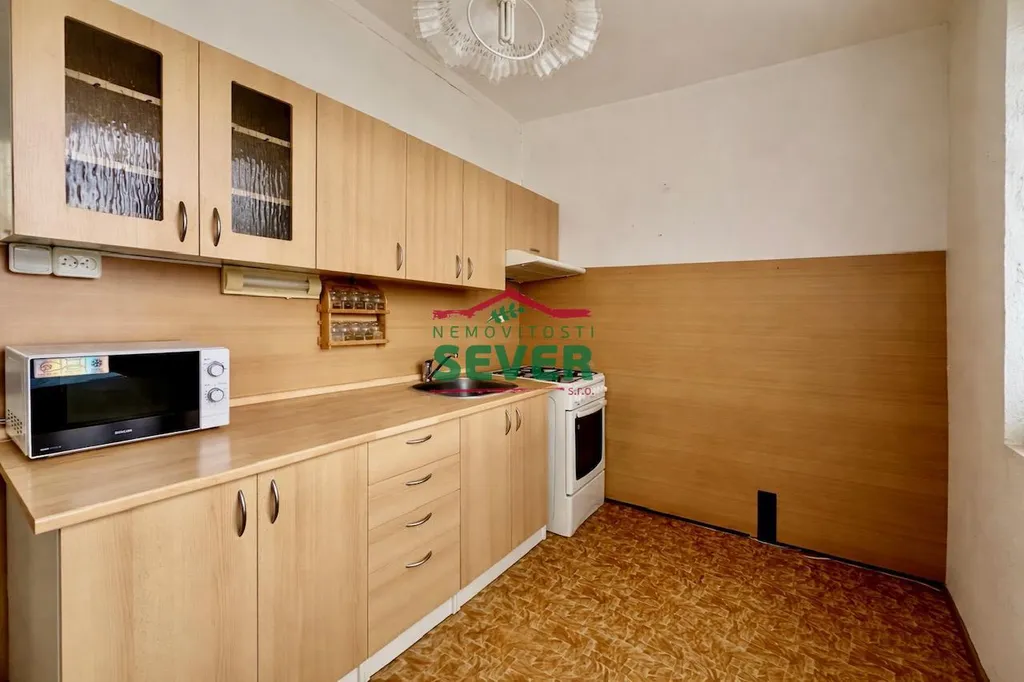 Nemovitosti SEVER vám zprostředkují koupi bytu s dispozicí 2+1 v družstevním vlastnictví v Mostě, ul. Zdeňka Štěpánka. Byt s celkovou výměrou 54m2 se nachází ve třetím patře cihlového domu bez výtahu. Dispozice bytu je v původním, zachovalém stavu s možností úprav dle vlastního uvážení a skládá se z předsíně s úložnými prostory, odděleně řešené koupelny a toalety, kuchyňské části a samostatných vstupů do obývacího pokoje a ložnice. K bytu náleží sklepní kóje. Výhodou jsou nízké náklady na bydlení. Byt je ihned volný k užívání. Dům, ve kterém se byt nalézá, prošel kompletní revitalizací. V okolí domu je dostatek zeleně a dobré parkování. Veškerou občanskou vybavenost nalezneme v docházkové vzdálenosti. V případě zájmu zajistíme optimální variantu financování na tuto nemovitost za zvýhodněných podmínek pro naše klienty.