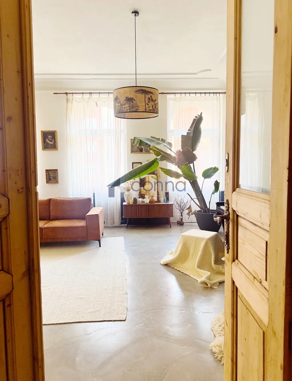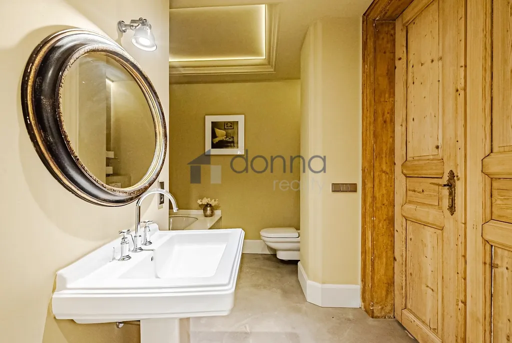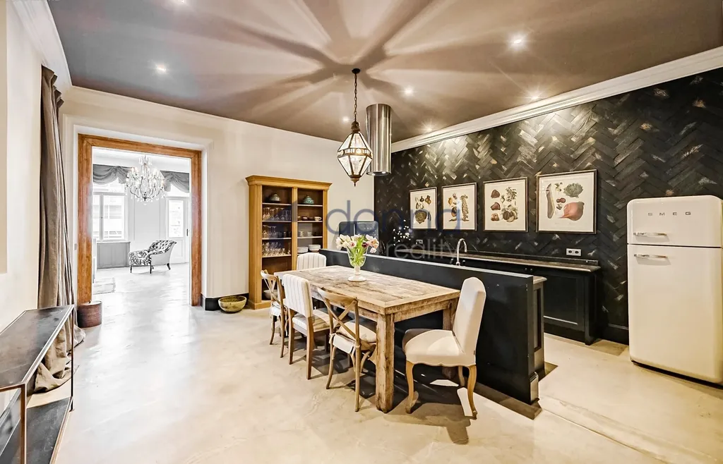 Stylový interiér zdobí funkční krb na dřevo, mramor v kuchyni a koupelně, vysoké stropy se štukovou výzdobou, dvoukřídlé původní masivní interiérové dveře a velká špaletová okna. Podlahy ze stěrky Pandomo jsou vyhřívané.