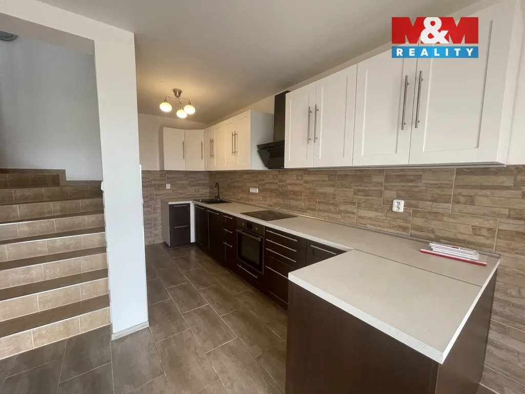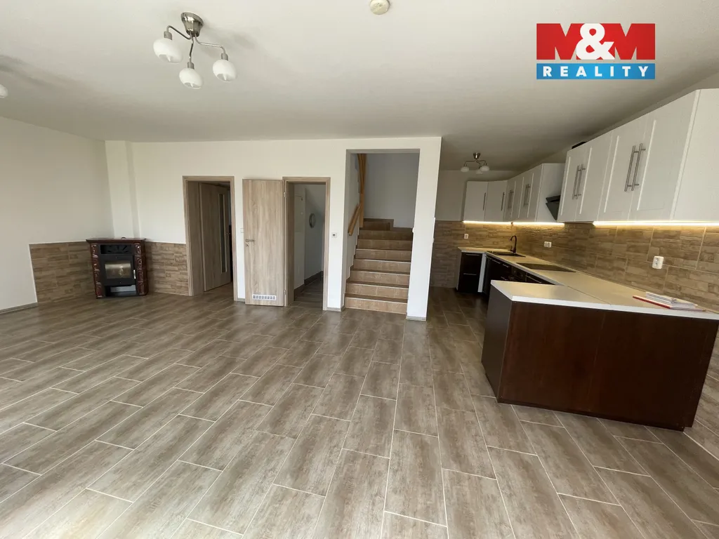 Nabízíme pronájem řadového rodinného domu s garáží, postaveného v r. 2017 ve velmi žádané lokalitě obce Velká Polom. Dům postaven s dispozicí 4+kk, majitelem upraveno na 3+kk. V přízemí domu se nachází předsíň, technická místnost s WC, kuchyň, vybavena kuchyňskou linkou s vestavěnými spotřebiči, a je propojena s obývacím pokojem 7,40x 4,60cm. odkud je vstup na krytou pergolu a zahradu, vedle kuchyňské linky spíž. V horním patře je koupelna s vanou i sprchovým koutem, WC, ložnice a velký pokoj, který lze rozdělit na 2 pokoje. Vytápění domu je přízemí zajištěno podlahovým topením a krbovými kamny, zbytek domu moderními přímotopy. Dům je zateplený a má nízké náklady na bydlení. Na zahradě je k dispozici domek na nářadí, před domem mohou zaparkovat až 3 auta a jedno v garáži. Strategická poloha, díky napojení na Rudnou autem 20 min. do Ostravy i Opavy, a nachází se v obci s veškerou občanskou vybaveností. Doporučujeme prohlídku této zajímavé nemovitosti.