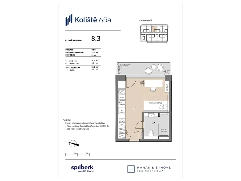 K dlouhodobému pronájmu Vám nabízíme zcela nový, krásný, světlý, moderní byt 1+kk v osobním vlastnictví v novostavbě bytového domu na ulici Koliště, Brno. Byt o ploše 22m2 je umístěn ve 8.NP cihlového domu s výtahem a je orientován do klidného vnitrobloku a náleží k němu balkón o ploše 5,2 m2.