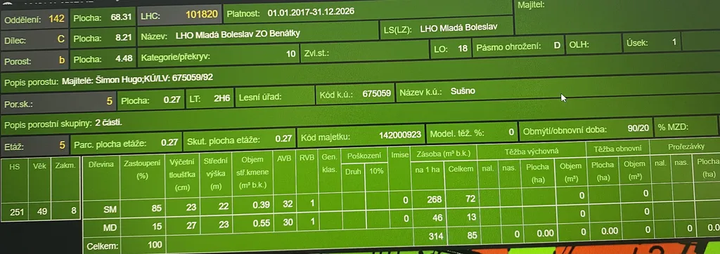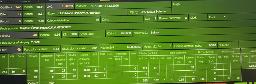 Prodej lesního pozemku v katastrálním území Sušno, obec Kropáčova Vrutice, okr. Mladá Boleslav. Jedná se o pozemek p.č. 460 o výměře 15.167 m². Pozemek je situován na mírně až středně svažitém terénu s přístupem po obecní cestě až k pozemku. Na ploše pozemku se nachází dle platných LHO lesní porost buku a smrku ve věku 13 let, lesní porost smrku a modřínu ve věku 44 let, lesní porost smrku a modřínu ve věku 57 let a mladý lesní porost břízy, buku, smrku, jeřábu a keřů z přirozené obnovy ve věku 5 let. Mladší smrkový porost je převážně suchý. Pozemek je vhodný k stavbě účelového lesního zařízení sloužícího lesu a zvěři. Foto je aktuální. List vlastnictví č. 117. Informace na tel. nebo e-mailu.