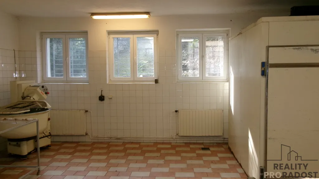 V zastoupení majitele Vám nabízíme k pronájmu zajímavé prostory bývalé pekárny ve Střelicích u Brna. Prostor je zkolaudovaný na potravinářskou výrobu a je vhodný i na manipulační sklad či dílnu, např. stolařství či zámečnictví. Rozvod 380V , vše v mědi, vytápění plynovým kotlem. Současný příkon 3x50 A s možností navýšení. Dispozice: předsíň, šatna zaměstnanců s toaletou a sprchovým koutem, malý sklad, větší sklad, kancelář, výrobní prostor. Možnost najetí dodávkou až k dílně. Volné k pronájmu ihned.