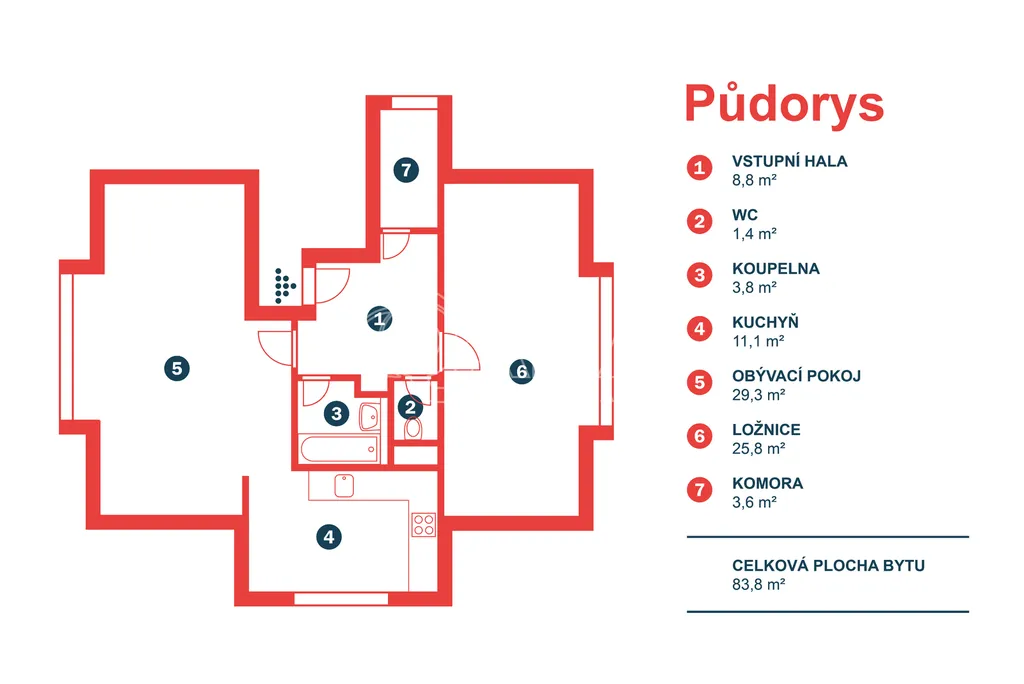 Exkluzivní nabídka prodeje bytu 3+1 (84m2) v druhém patře budovy z roku 2008.