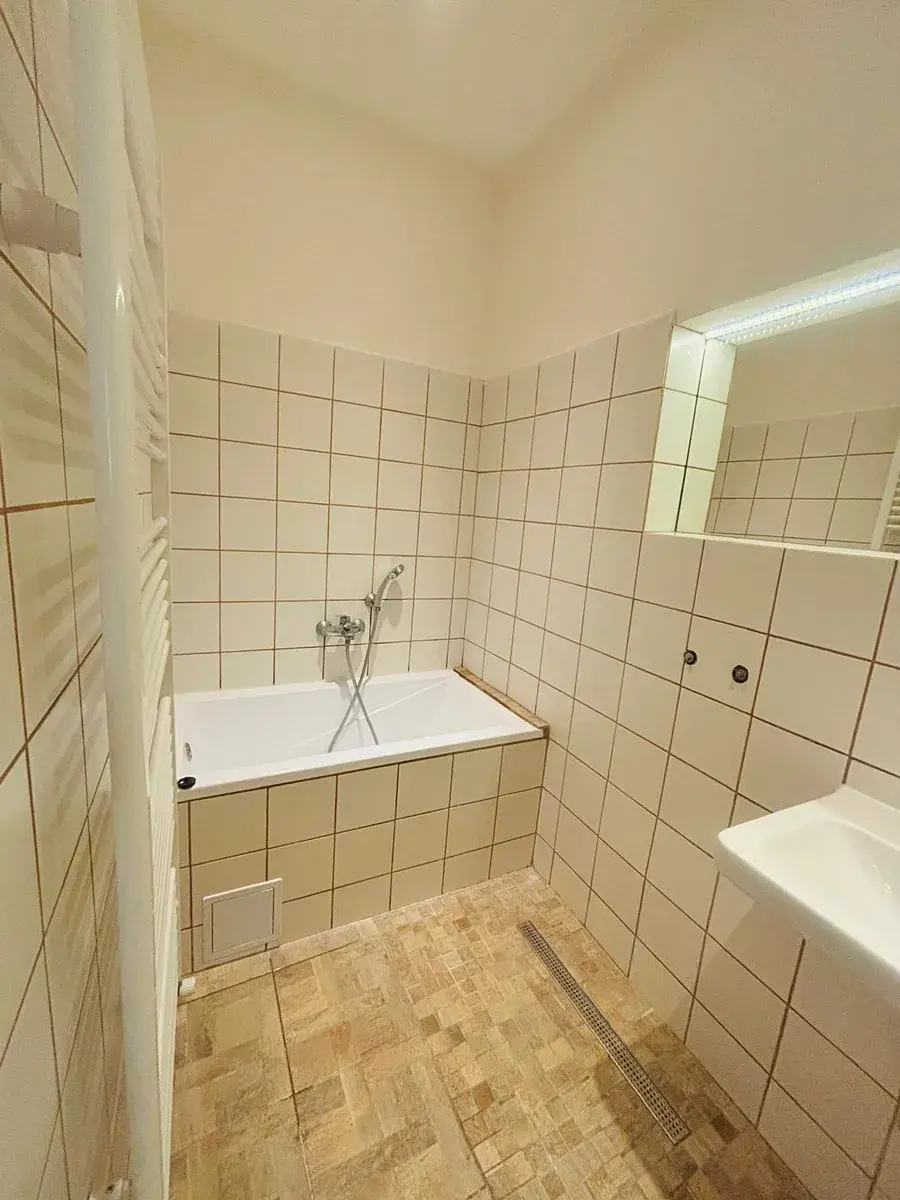 K bytu náleží také sklep. Velká kuchyně s jídelním prostorem, dva neprůchozí pokoje, koupelna a WC.
