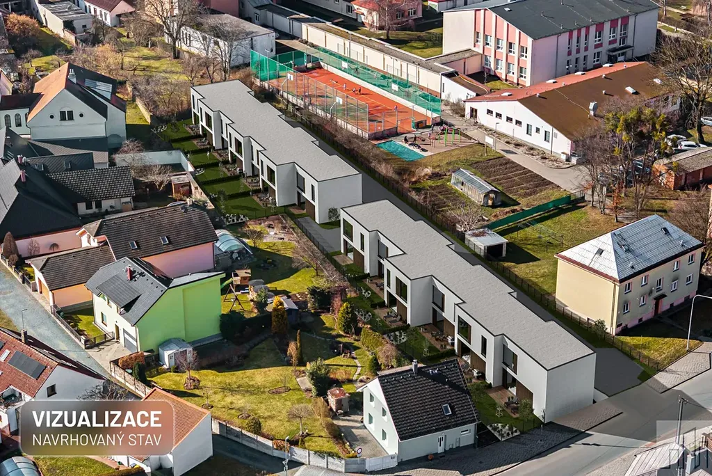 o Architektonická zastavovací studie (05/2021) na 13 řadových RD (4+kk) se zahradami.