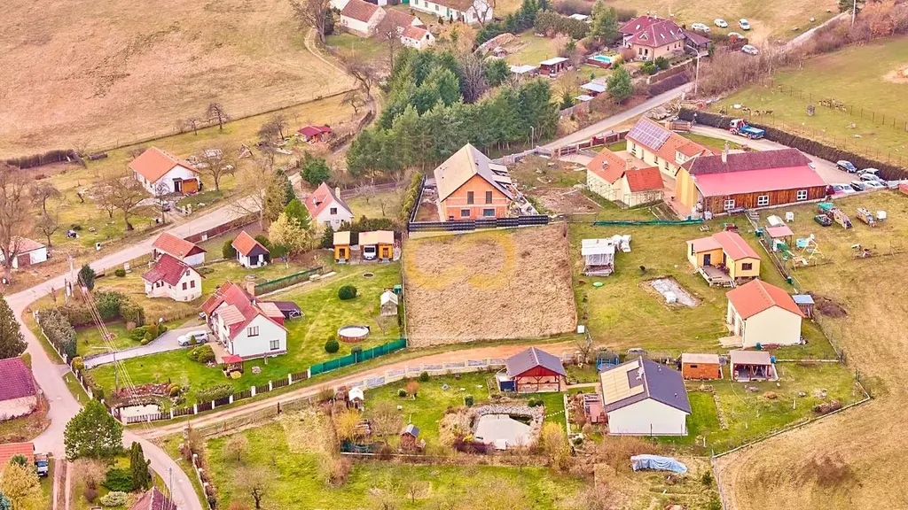 Stavební pozemek má výměru 1267 m² a jeho praktický obdélníkový tvar a rovinatý povrch vám usnadní stavbu i plánování zahrady.