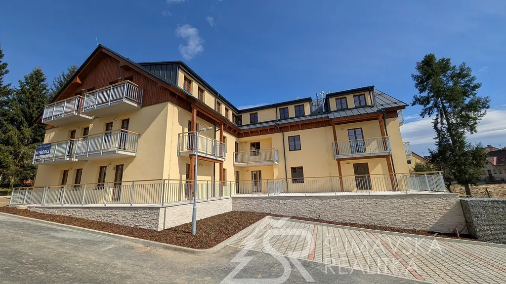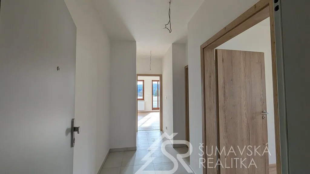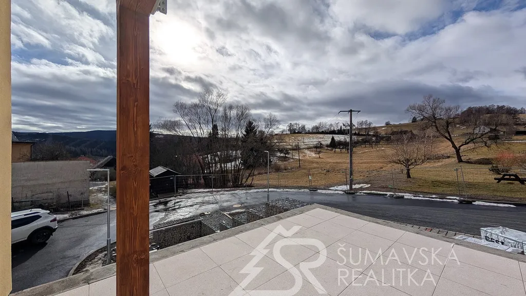 NOVÝ BYT 2+kk S OHROMNOU TERASOU - KAŠPERSKÉ HORY - ŠUMAVA. Lokalita: zcela nový, právě dokončovaný bytový dům o 24 bytech má dobrou adresu na Šumavě - v malebném horském středisku Kašperské Hory 758 m n. m. Nad ním završuje siluetu okolních hor nejvýše položený hrad v Čechách - středověký Kašperk založený Karlem IV. k ostraze zemské hranice a Zlaté stezky. Hrad Kašperk je dominantou města a spolu s nádhernou krajinou vytváří kouzlo spojení se starou Šumavou. Malebné náměstí s renovovanými historickými domy, kašnou, radnicí, která by mohla být kulisou do pohádky a gotickým kostelem sv. Markéty. V Kašperských Horách se alespoň na chvíli přenesete do doby Karla IV. Ve městě je perfektní občanská vybavenost (škola, školka, lékařský dům, kino, muzea, knihovna, obchody a restaurace s příjemným posezením). Na okraji města směrem k Amáliinu údolí je moderní SKIAREÁL, vybavený večerním osvětlením sjezdovek a lyžařskou školou s půjčovnou. V létě najdete v okolí mnoho krásných míst dostupných na elektrokolech nebo pěší turistikou.