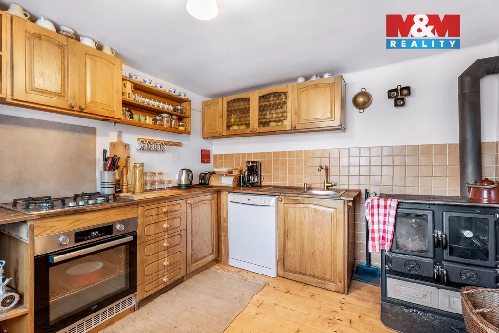 Uvnitř najdete prostor, kde všechno dává smysl. Obývací pokoj s krbem, který přirozeně spojuje celý dům. Kuchyň, kde se vaří bez spěchu. Tři ložnice v patře, kde ráno nevstáváte podle budíku, ale podle ptáku, co spívají za okném.