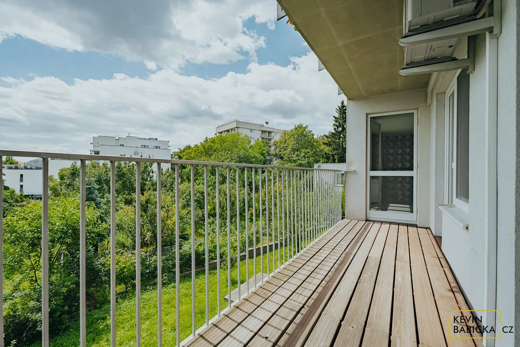 Jednotka je velmi dobře dispozičně řešená, a proto z každého pokoje je přístup na balkón o výměře 9 m². Zároveň byt nabízí i nepřeberné množství úložného prostoru a je z velké části vybavený. Najdeme tu například vestavné skříně, manželskou postel, velkorysou pohovku a kuchyňskou linku na míru včetně spotřebičů. V letních měsících se můžete zchladit i klimatizací. Celkově se jedná o velmi udržovaný byt na atraktivní adrese s výborným spojením do centra.