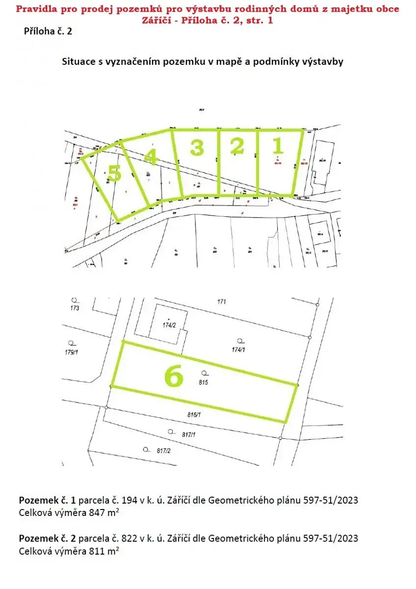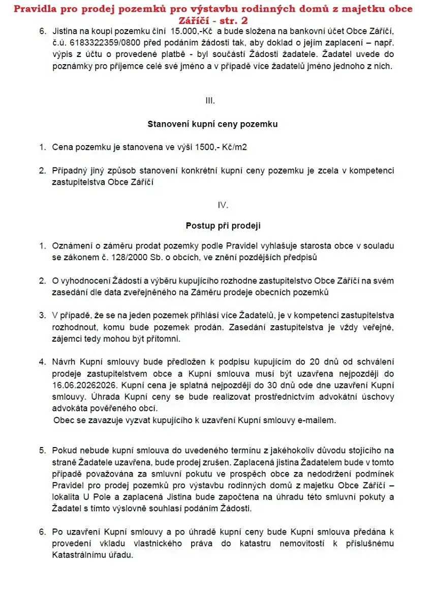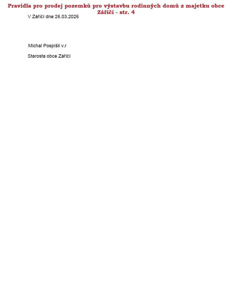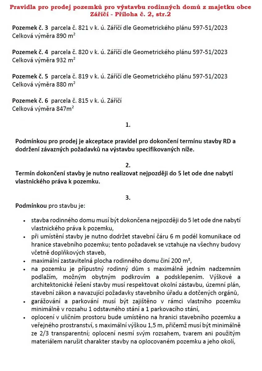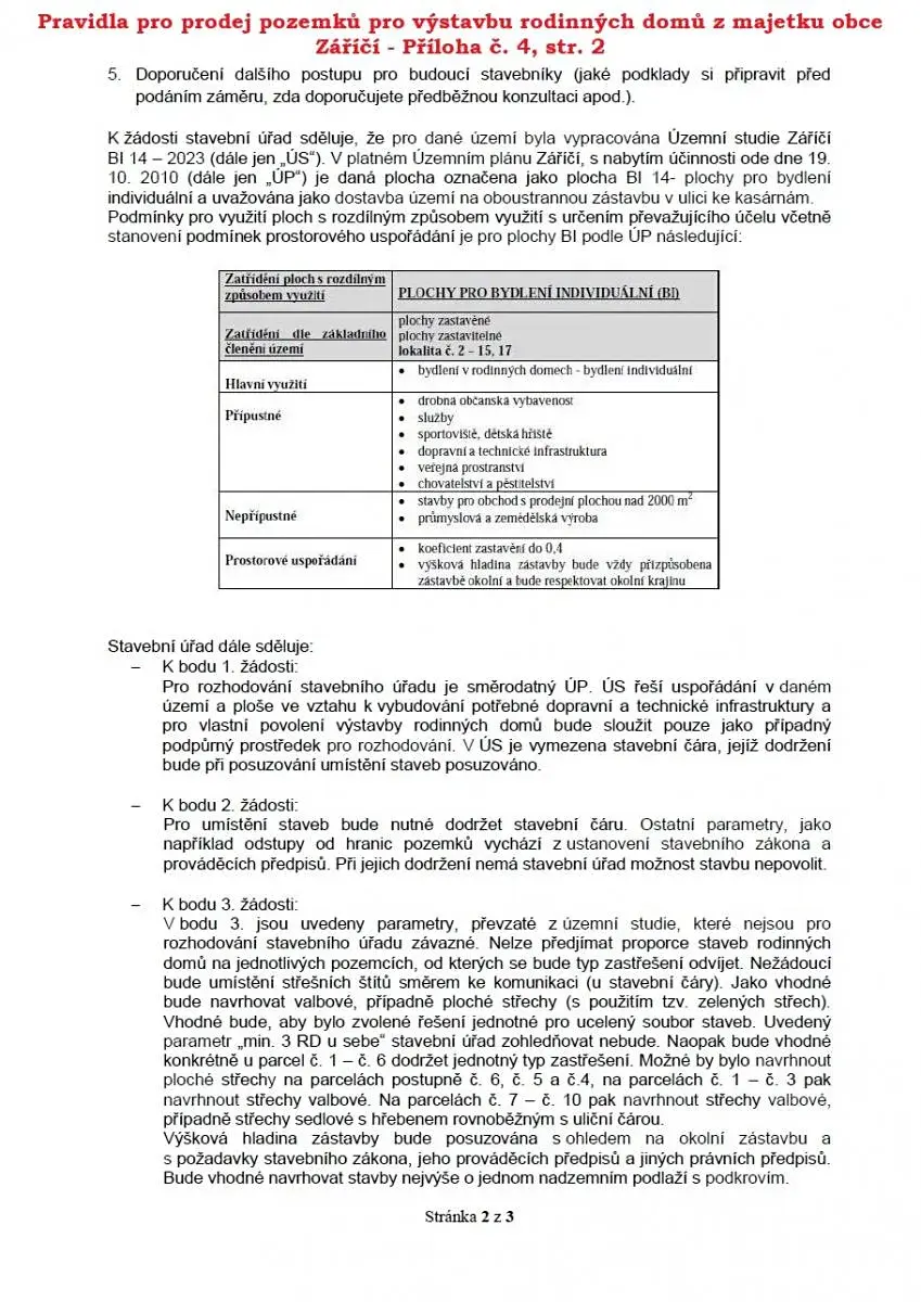 Sdělení stavebního úřadu k výstavbě naleznete v příloze č. 4 Pravidel pro prodej pozemků pro výstavbu rodinných domů z majetku obce Záříčí - lokalita U Pole.