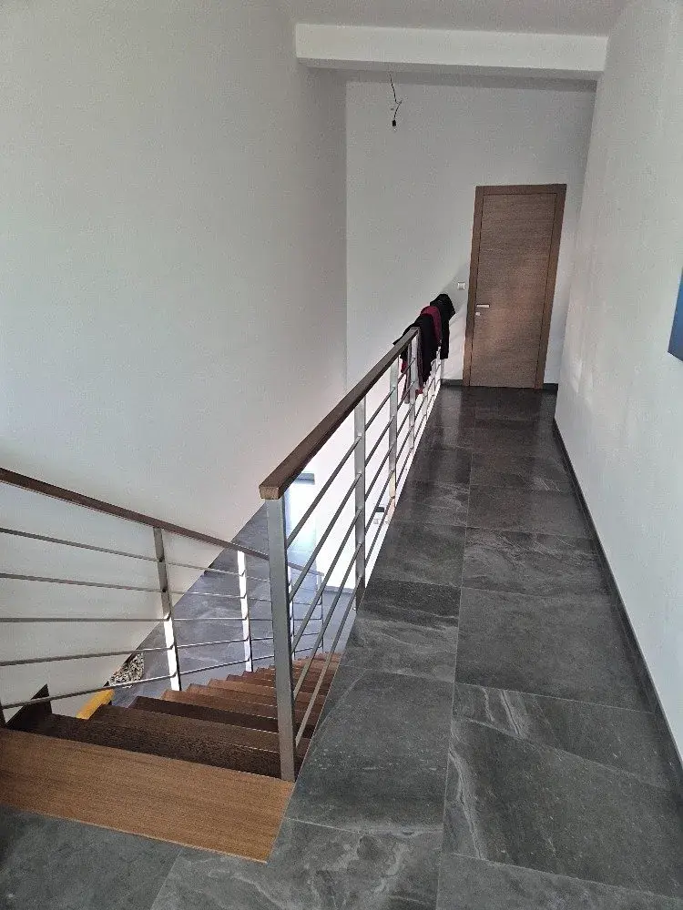 V patře je chodba, pokoj, 2x koupelna s WC, technická místnost, a pokoj s chodbou a šatnou.