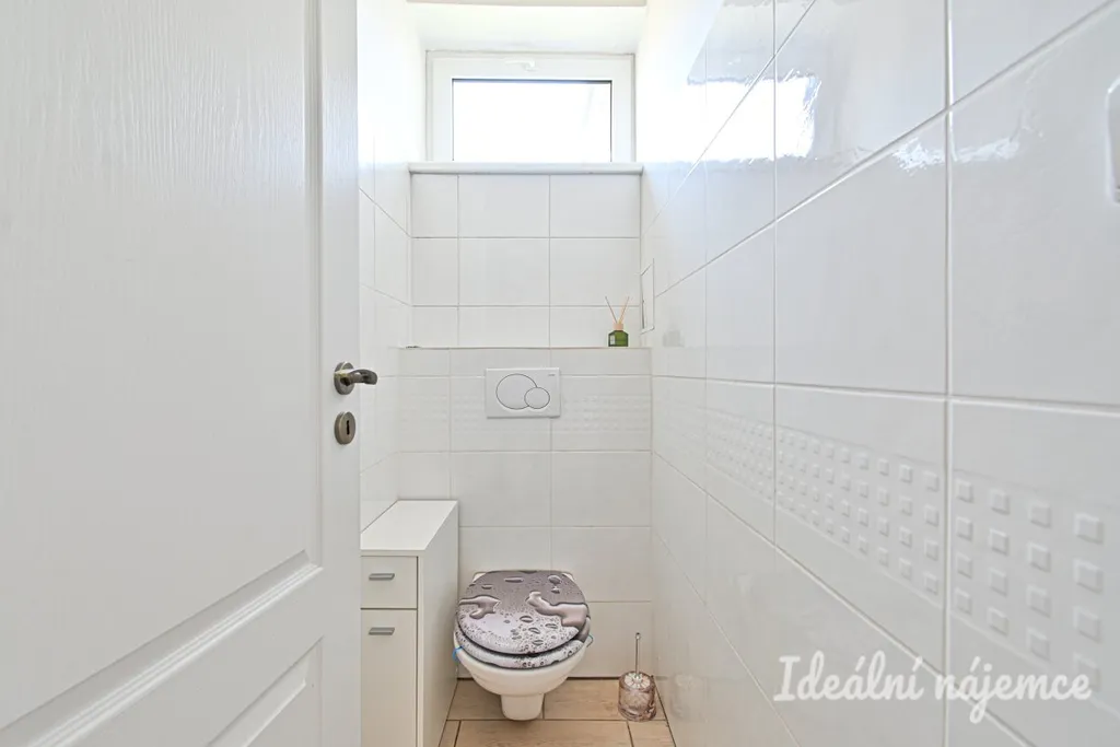 V koupelně se nachází sprchový kout, umyvadlo, zrcadlo. WC je samostatné. Na podlahách je dlažba. Je možno využívat terásku před bytem pro pěstování rostli a posezení.