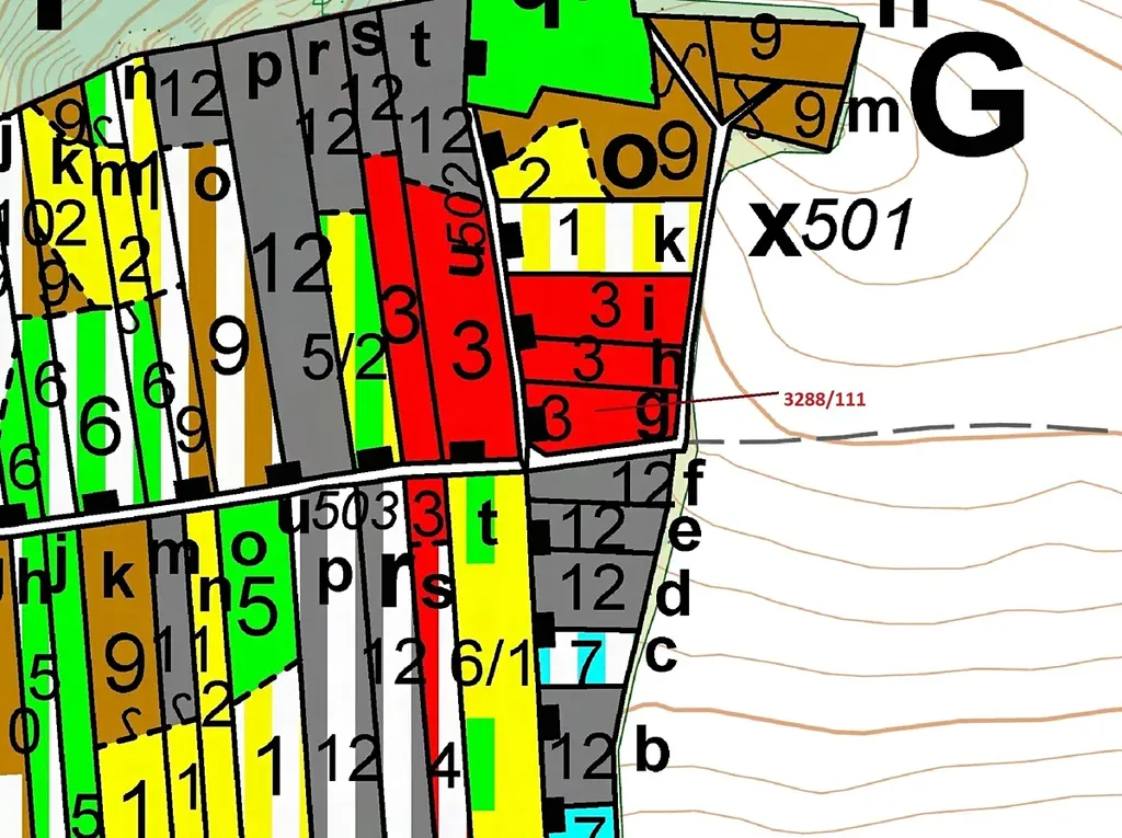 Lesní pozemek o výměře 978 m2, parcelní číslo 3288/111, podíl 1/1, katastrální území Hosty, obec Hosty, obec s rozšířenou působností Týn nad Vltavou, okres České Budějovice, Jihočeský kraj. Po těžbě.