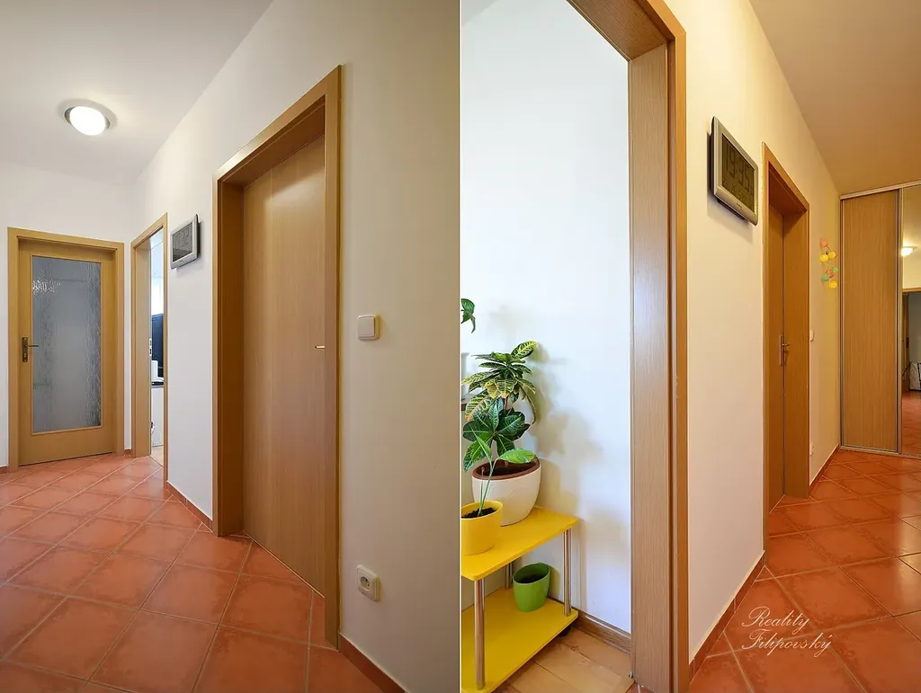Velmi se mi líbí logické a nekomplikované uspořádání bytu s prostornou ložnicí, ve které zbylo místo i na pracovní kout, s obývacím pokojem s jídelním koutem a vstupem na balkón volně propojeným s kuchyní, kterou je možné uzavřít posuvnými dveřmi. Skvělá je technická místnost s pračkou, sušičkou a úložnými prostory a ani v koupelně rozhodně nebudete trpět stísněným pocitem. Vstupní chodba je pak vybavena dalšími vestavnými úložnými prostory a zvládne i příchod početnější návštěvy. K bytu náleží velkorysá sklepní kóje s výměrou 5,07m2.