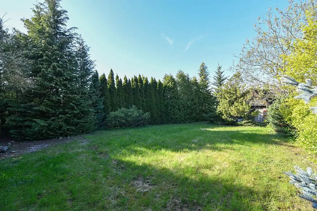 Na zahradě se nachází další garáž, která je na úrovni silnice a parkuje se v ní rovnou ze silnice. Na zahradě se také nachází zděný zahradní domek o výměře cca 45 m2, který by bylo možné upravit na bydleni. Součástí zahrady je i prostor na bazén a již vybudovaným přístřeškem na vybavení k bazénu. Dům je obklopen krásnou a velkou zahradou se vzrostlými stromy, ovocnými a okrasnými keři a nabízí tak úplné soukromí.
