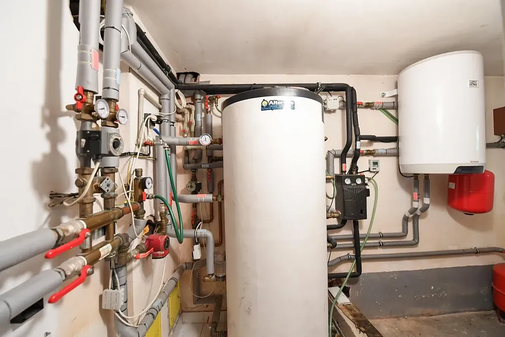Ve sklepě se nachází velká garáž pro dvě auta přístupná zvenku i zevnitř domu. Dále se ve sklepě nachází v první místnosti sauna, prostor na domácí tělocvičnu a tepelné čerpadlo, ve druhé místnosti krb, ve třetí místnosti spíž, a dále i technická místnost s bojlerem na teplou vodu a ovládáním rozvodu teplé a studené vody po domě. Dům je vybaven tepelným čerpadlem a solárními panely, podlahovým topením a radiátory. Jednou z výhod domu jsou proto nízké provozní náklady na ohřev vody a vytápění.