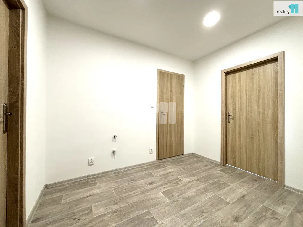 Dispozičně rozdělen do obývacího pokoje s kuchyňským koutem, ložnice a prostorná vstupní chodba. Součástí je koupelna se sprchovým koutem a WC. Kuchyň je vybavena kuchyňskou linkou včetně spotřebičů (vestavěný sporák, sklokeramická deska, komínový odsavač par, myčka). Příjemné prostředí v bytě vytvářejí snížené stropy s bodovými světly v kuchyni, koupelně a na chodbě.