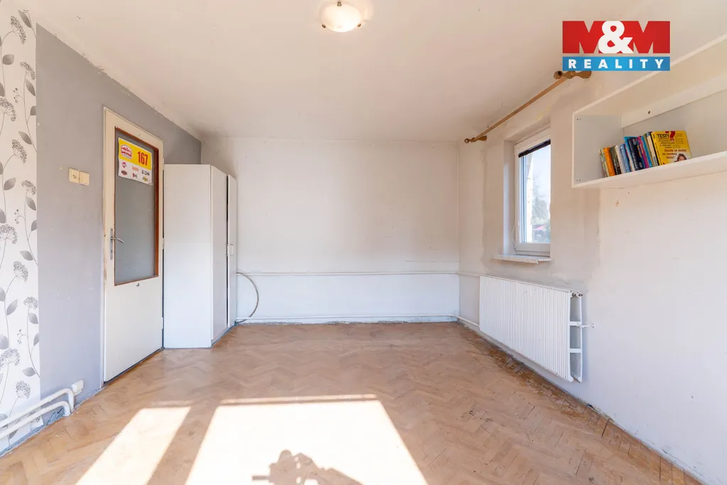 Nabízíme samostatně stojící rodinný dům o dispozici 4+1 se zahradou a dvěma garážemi v obci Soběsuky, místní části Milovice. Nemovitost nabízí ideální kombinaci klidného bydlení a dostatku prostoru pro rodinu. V přízemí se nachází kuchyně propojená s obývacím pokojem, ložnice, koupelna s WC a technické zázemí. V patře jsou dva samostatné pokoje, toaleta a koupelna s umyvadlem a přípravou pro sprchový kout. Vytápění je řešeno ústředním topením s radiátory napojeným na krbová kamna s výměníkem, další krbová kamna v obývacím pokoji dotváří příjemnou atmosféru.