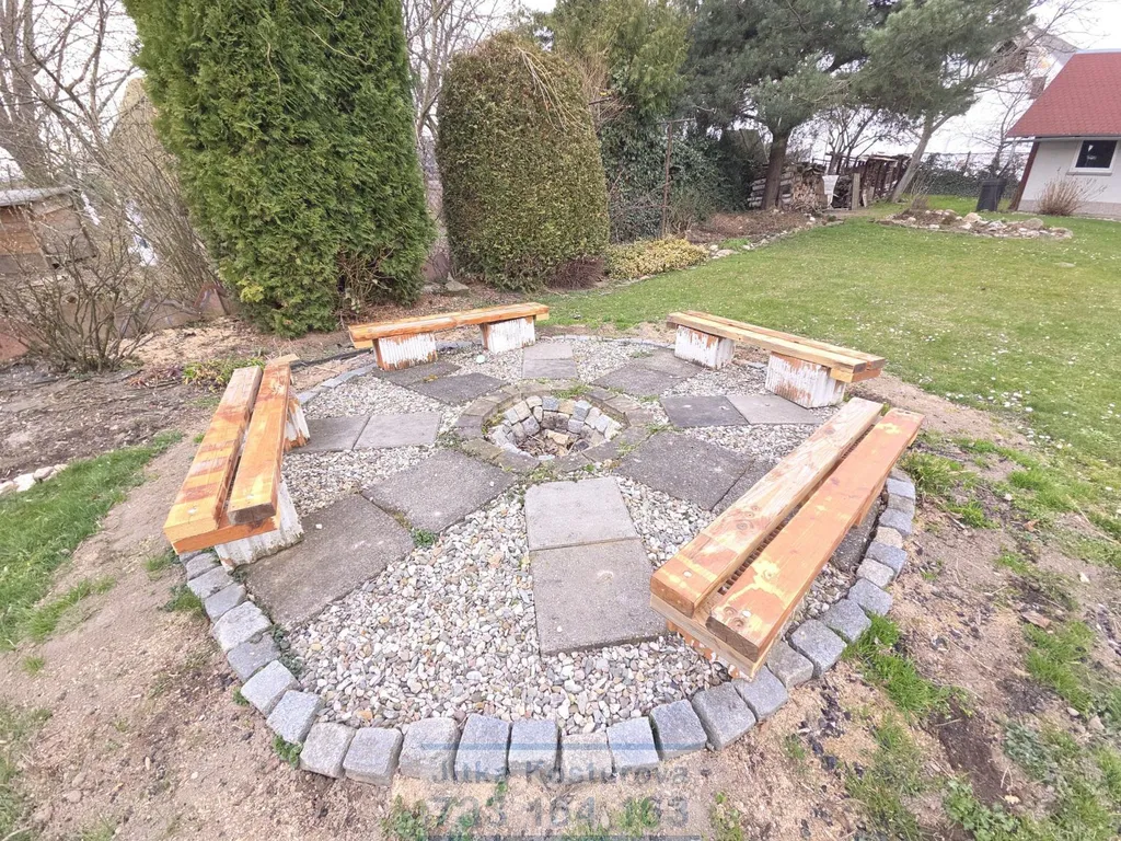 zahrada 746 m and sup2; - část slouží k pěstování zeleniny, část jako trávník s posezením a ohništěm, dřevostavba (sklad na zahradní techniku a dřevo), skleník cca 7 m and sup2;, ovocné stromy, samostatný vjezd na pozemek a parkování pod přístřeškem. Možnost vjezdu i ze zadní obslužné komunikace (vhodné např. pro dovoz dřeva). Celý pozemek je oplocen. V roce 2025 byly hranice všech pozemků nově zaměřeny katastrálním úřadem.