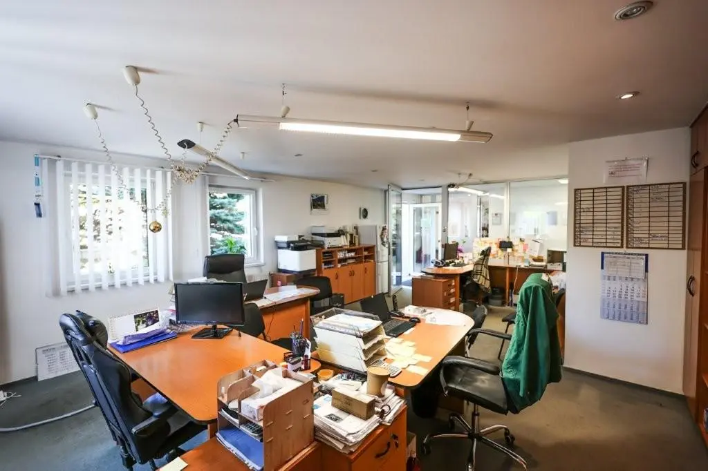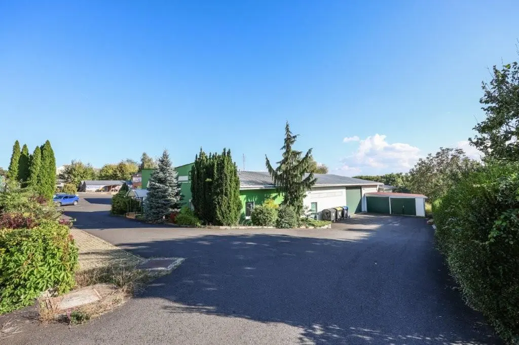 Objekt je ve velmi dobrém stavu. Přední část je zděná, zbylé části jsou v ocelové konstrukci se zateplenými panely. V zadní části objektu naleznete další možnosti úschovy výrobků, ale hlavně 3 velké garáže se samostatným vjezdem. Objekt disponuje vysokými stropy a dostatkem prostoru pro jakýkoliv typ podnikání. Nemovitost je vytápěna kombinací solární energie a plynového kotle, který vytápí přední administrativní sekci.