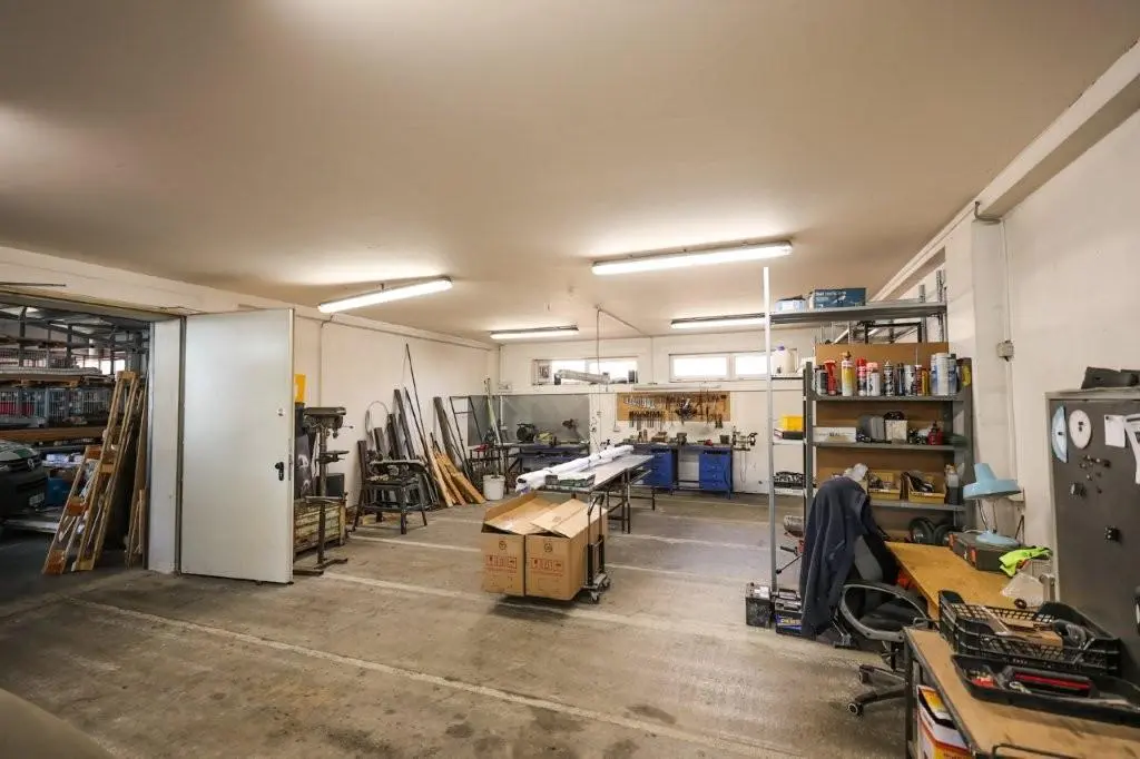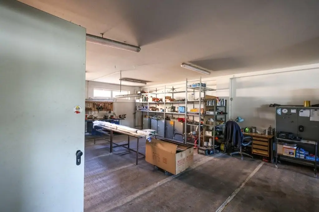 Objekt je ve velmi dobrém stavu. Přední část je zděná, zbylé části jsou v ocelové konstrukci se zateplenými panely. V zadní části objektu naleznete další možnosti úschovy výrobků, ale hlavně 3 velké garáže se samostatným vjezdem. Objekt disponuje vysokými stropy a dostatkem prostoru pro jakýkoliv typ podnikání. Nemovitost je vytápěna kombinací solární energie a plynového kotle, který vytápí přední administrativní sekci.