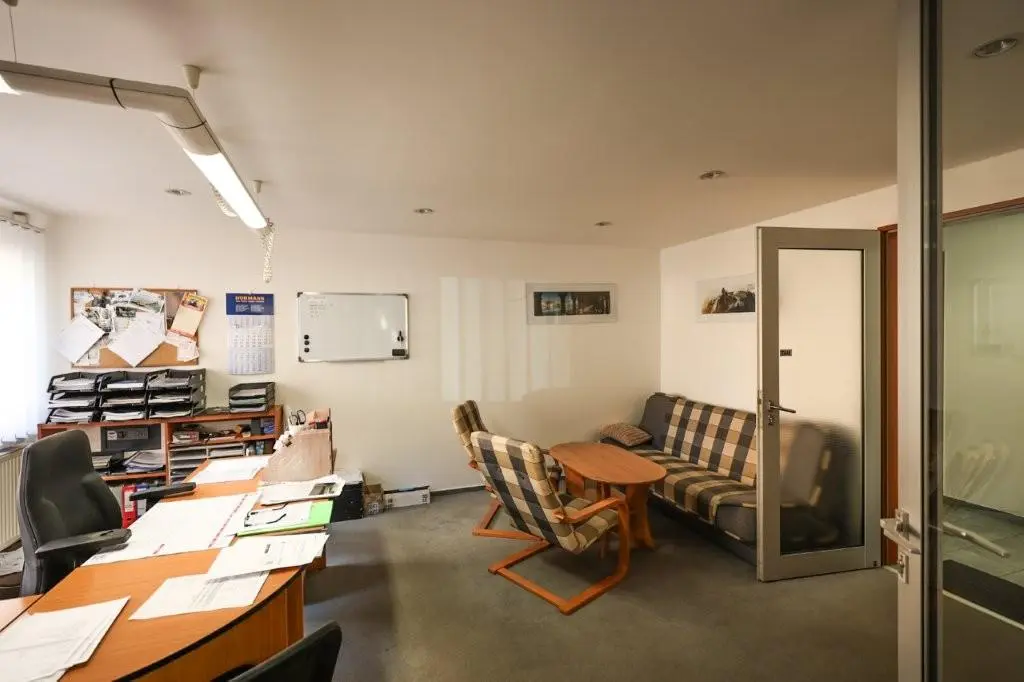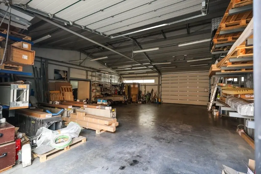 Objekt je ve velmi dobrém stavu. Přední část je zděná, zbylé části jsou v ocelové konstrukci se zateplenými panely. V zadní části objektu naleznete další možnosti úschovy výrobků, ale hlavně 3 velké garáže se samostatným vjezdem. Objekt disponuje vysokými stropy a dostatkem prostoru pro jakýkoliv typ podnikání. Nemovitost je vytápěna kombinací solární energie a plynového kotle, který vytápí přední administrativní sekci.