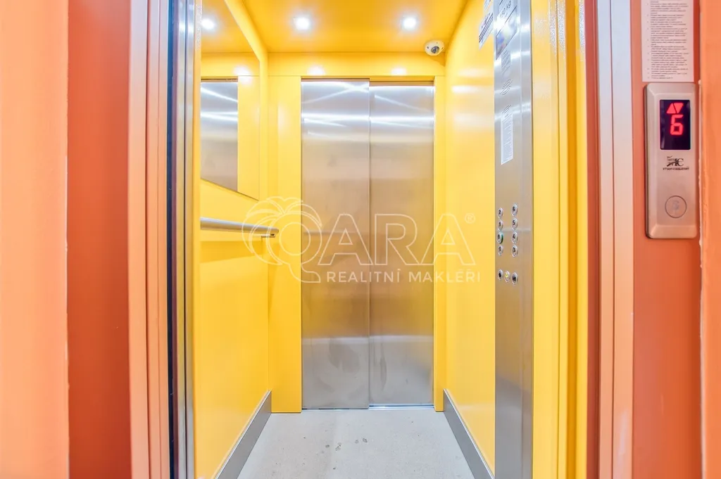 Nachází se v posledním, 6. patře, takže nad vámi už nikdo nebude chodit, a zároveň nabízí otevřený výhled do okolí.