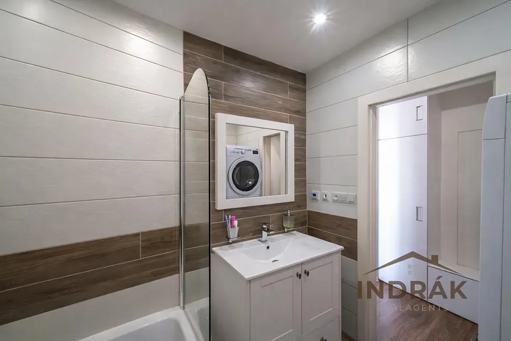 Velkým benefitem je koupelna po rekonstrukci, která nabízí komfortní zázemí s vanou, moderním obkladem a dostatkem prostoru pro každodenní relaxaci. Samozřejmostí je oddělené WC.