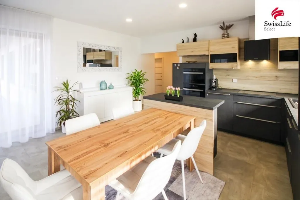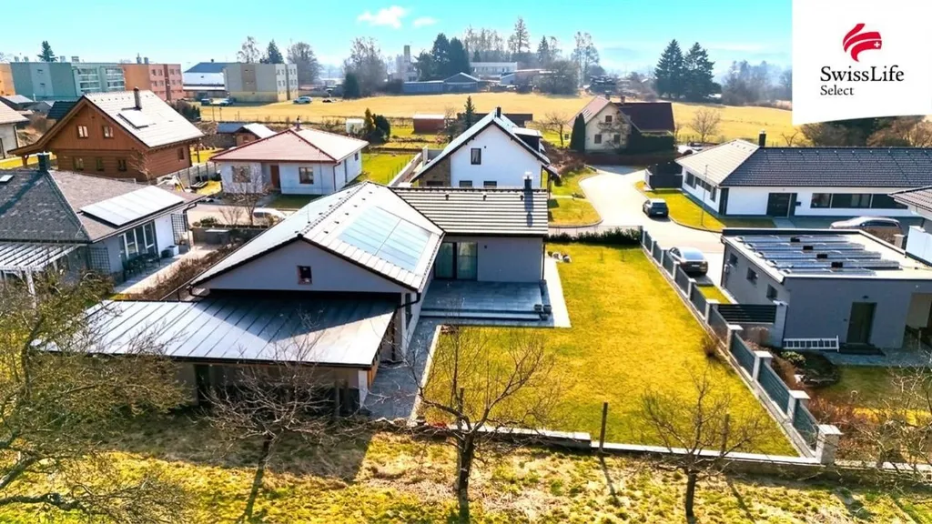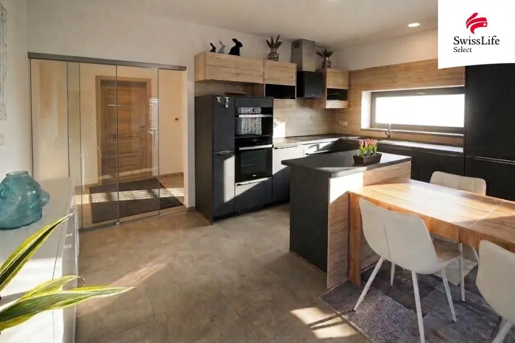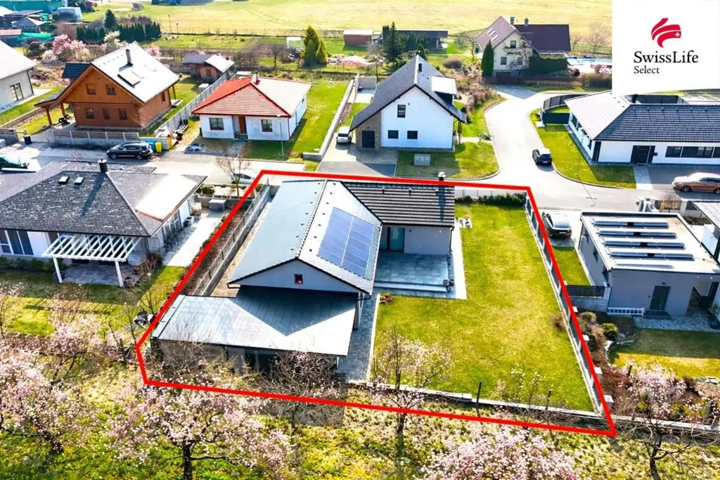 Tento dům byl navržen s důrazem na pohodlí, prostor a harmonii s okolím. Srdcem domu je slunný obývací pokoj s kuchyňským koutem, odkud se přímo vstupuje na prostornou terasu s přípravou na vířivku ideální místo pro letní večery, rodinné oslavy nebo klidné chvíle jen pro vás. Díky orientaci od jihu na západ je interiér po celý den zalitý přirozeným světlem.